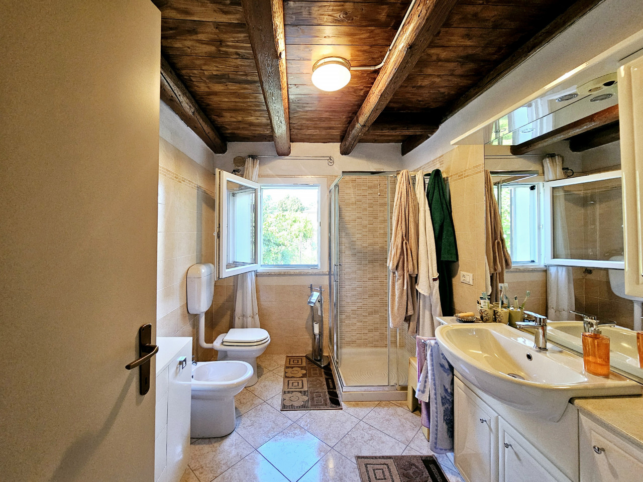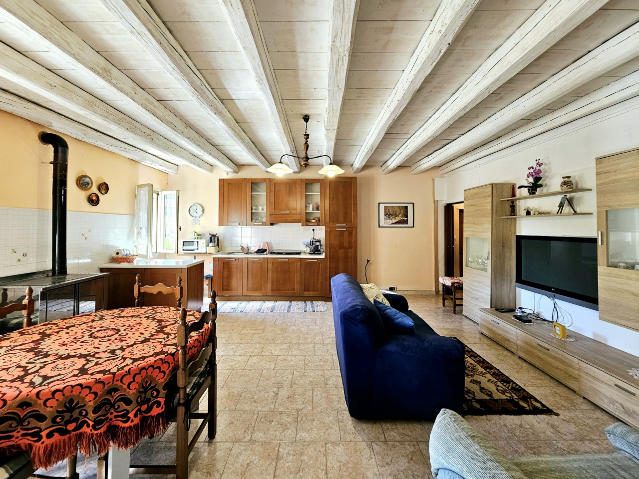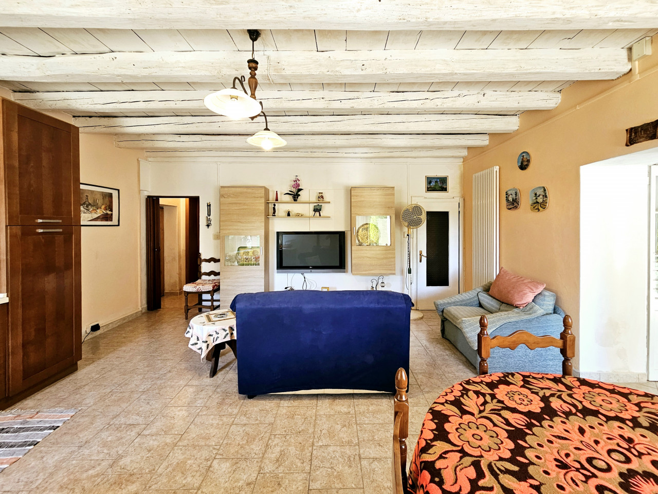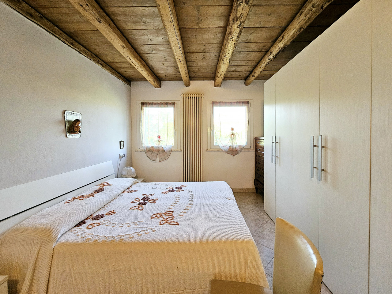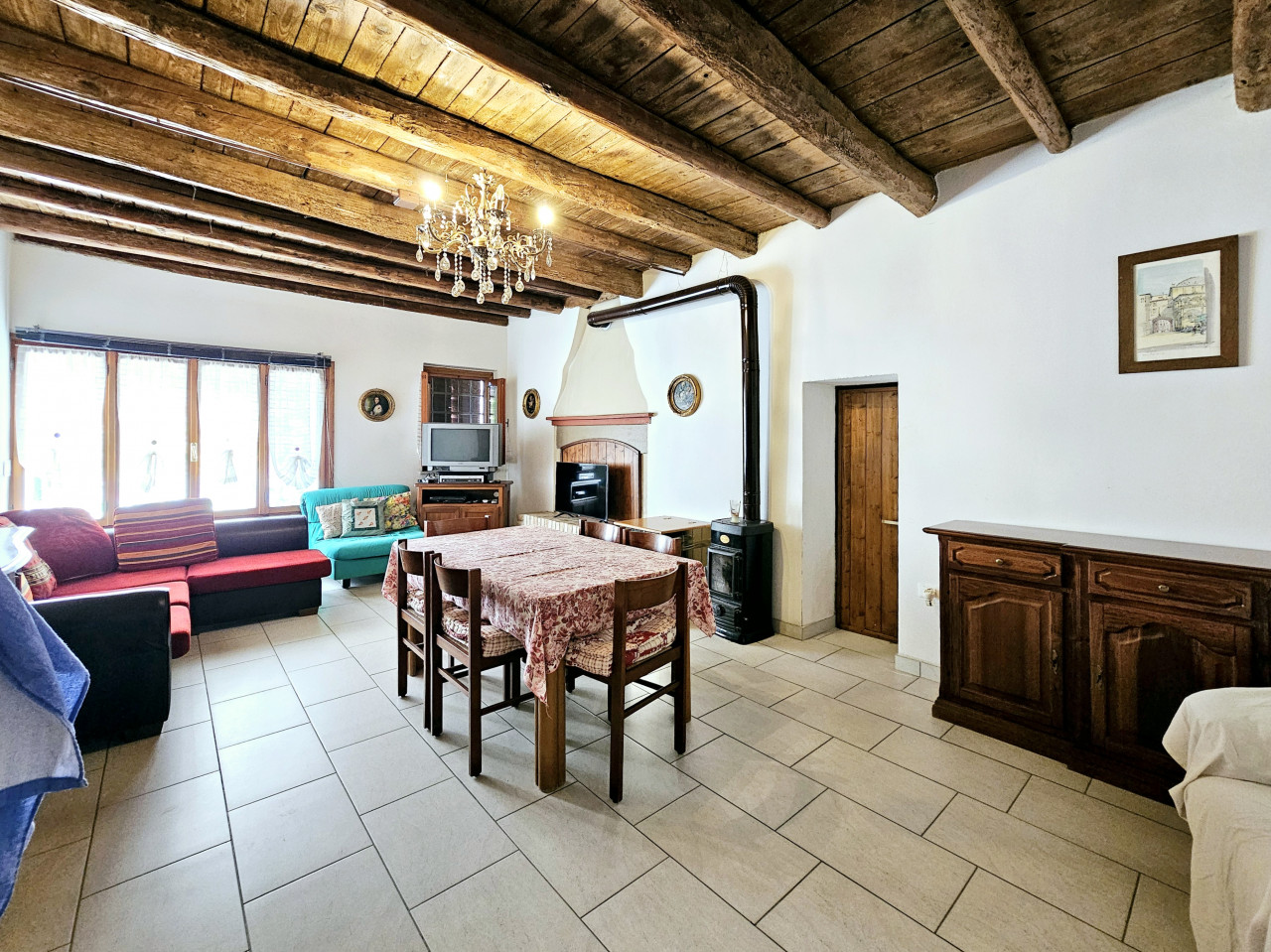 L'immobile è caratterizzato da una piacevole travatura a vista, ed è composto al piano terra da: ingresso con stanza polivalente, soggiorno con cucina, locale ad uso taverna con camino, due camere da letto matrimoniali, bagno e bagno/lavanderia.