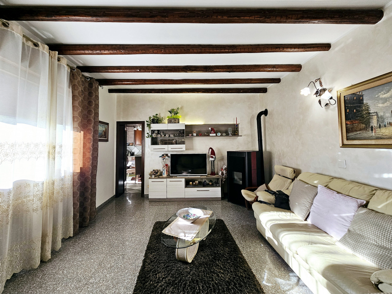 Al piano terra, con ingresso separato, troviamo la seconda abitazione, attualmente indipendente ma facilmente riconvertibile ad unica soluzione tramite collegamenti interni. Qui sono presenti, un secondo salotto, una cucina/taverna caratterizzata da calde pareti in legno e caminetto, un bagno e una lavanderia.