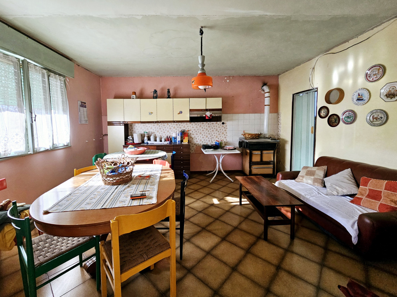 L’abitazione è composta al piano terra da cucina, soggiorno, bagno, spazioso magazzino e cantina; al primo piano trovano spazio quattro camere matrimoniali e un vasto granaio perfetto come deposito o ulteriore ampliamento della casa.